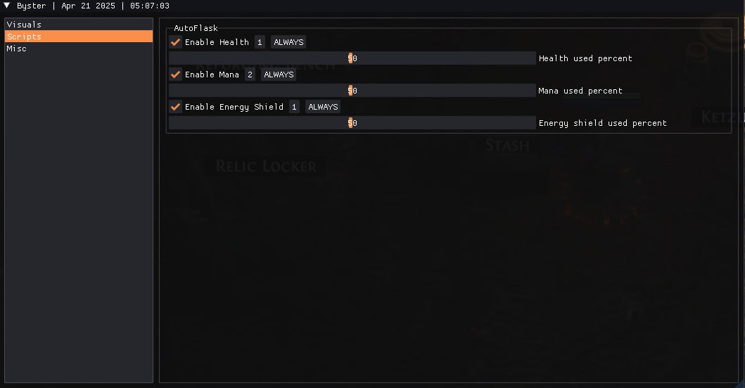 Откройте новые возможности в Path of Exile 2 с читом от компании Byster, созданным для максимальной эффективности и надежной защиты. Программа улучшает игровой процесс, предоставляя расширенные функции визуализации врагов, предметов и скрытых объектов, а также удобные инструменты для контроля в боевых и исследовательских ситуациях.